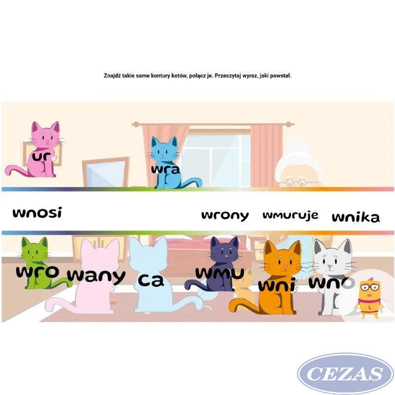 •     zadania na kartach pracy urozmaicają pracę i rozwijają małą motorykę;