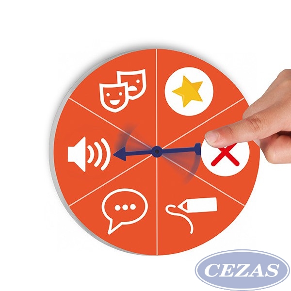 musi przedstawić i kręci strzałką na kole, aby zobaczyć, w jaki sposób ma ją odegrać.