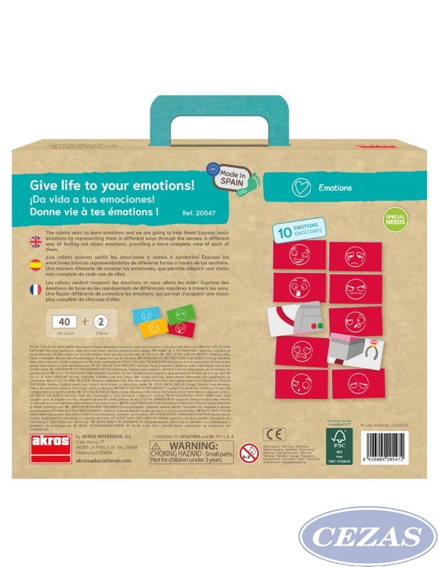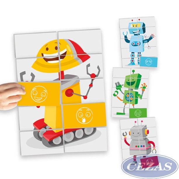 Gra zawiera 2 kółka i 40 kart wykonanych z mocnej, bardzo wytrzymałej i wysokiej jakości grubej tektury. Z kart tworzone są 4 roboty składające się z 10 kart każdy, a każdy element robota ma na plecach jedną z dziesięciu podstawowych emocji, które kierują naszym zachowaniem: szczęście, smutek, złość, zaskoczenie, wstręt, podziw, strach, ciekawość, bezpieczeństwo i poczucie winy.