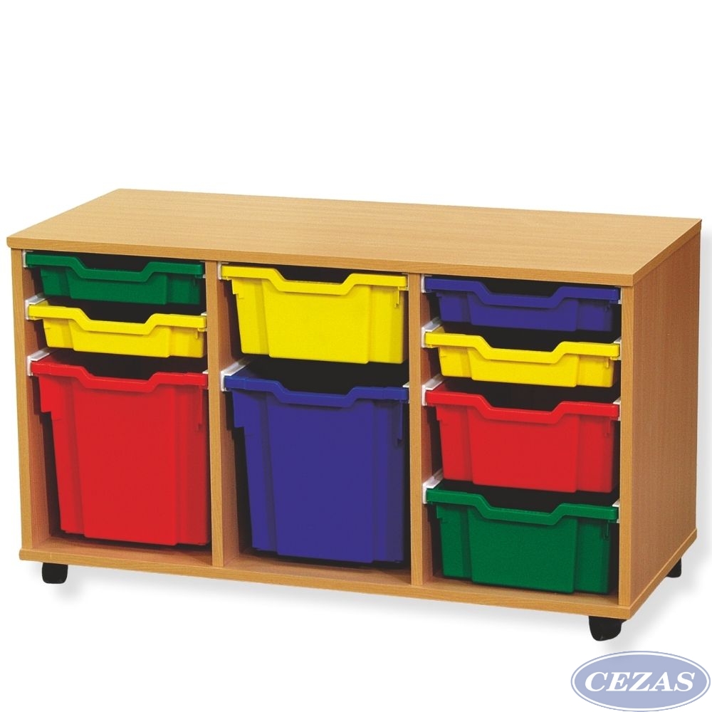 Pojemniki występują w czterech kolorach (czerwony, żółty, niebieski, zielony) i 3 głębokościach (30, 15 i 7,5 cm).
