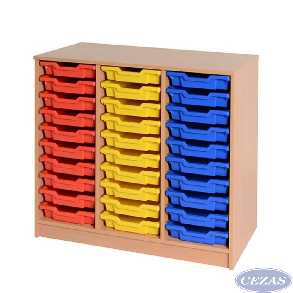 Pojemniki występują w czterech kolorach (czerwony, żółty, niebieski, zielony) i 3 głębokościach (30, 15 i 7,5 cm).