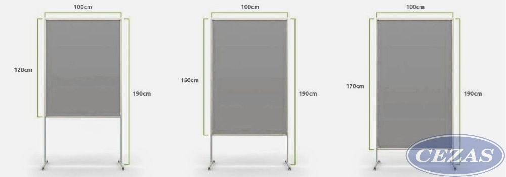 • Tablice dostępne są kilku formatach, a całkowita wysokość ścianki ze stelażem zawsze wynosi 190 cm.